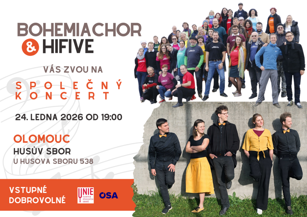Advent je tu a Bohemiachor tradičně pauzíruje, většina členů zpívá ve svých dalších pěveckých uskupeních vánoční koncerty a Rybovu vánoční mši. V lednu bude tradiční novoroční koncert, co však bude netradiční, je výjezd Bohemiachoru do Olomouckého kraje, a to přímo do krajského města. Honza Sítař, náš tenor, aranžér Bugatti stepu pro sbor, člen vokálního uskupení HiFive nás do své […]